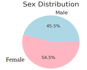 Figure 2. The pie chart reveals a fairly balanced distribution of sex among the patients.
