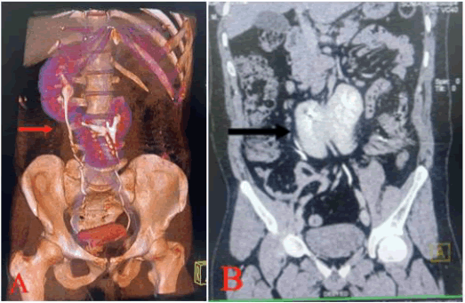 Crossed-fused renal ectopia is about 10 times more common than unfused renal ectopia, with an autopsy incidence rate of roughly 1:75001-3. In crossed-unfused renal ectopia, the ureter of the ectopic kidney descends, crosses the midline, and enters the urinary bladder in the normal position, but the renal parenchyma of the ectopic kidney does not fuse with that of the normal kidney. The ectopic kidney crosses to the other side and fuses with the normal kidney in crossed-fused renal ectopia. Usually, the ectopic kidney with fusion is situated inferiorly to the normal kidney. Crossed-fused renal ectopia is a rare congenital abnormal development of the urinary system (Akdogan L, Oguz AK, Ergun T, Ergun I, 2015). There are 6 subtypes of the anomaly 6: